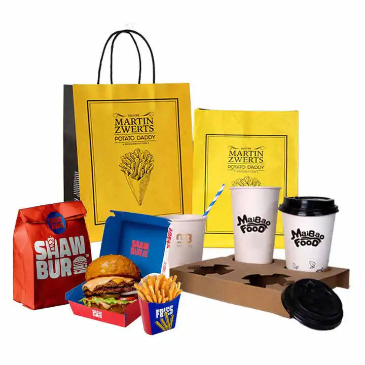 Dayu Custom packaging Food Grade Fast Food Packaging set for Hot Dog French Fried Chicken Carton Burger To Go boxes paper bags cups
