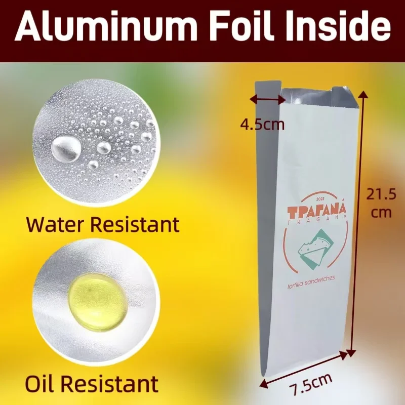 Aluminium Foil Lined Inside White Paper Bags for Hot Dog barbecue fried chicken french fries Submarine Sandwich Keep Warm and Fresh paper Packaging bag