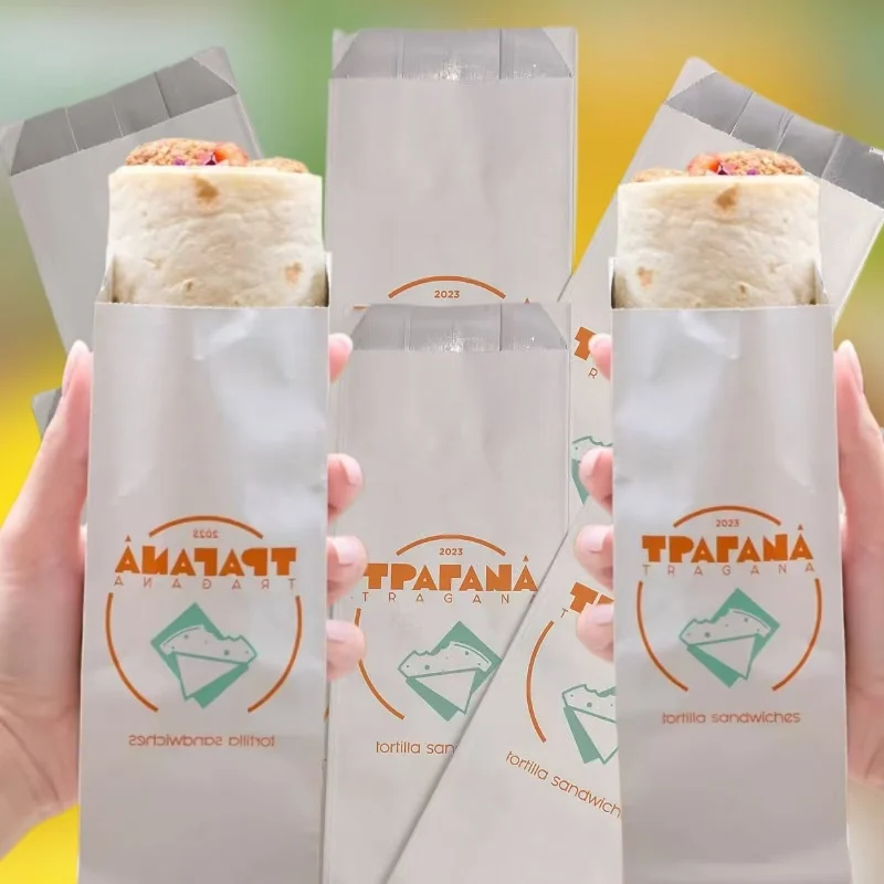 Dayupack Custom Aluminium Foil Lined Inside White Paper Bags for Hot Dog Submarine Sandwich Keep Warm and Fresh paper Packaging bag