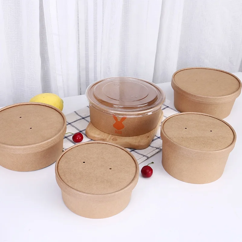 Dayupack Custom Disposable Brown Kraft Paper Salad Bowl Lids ODM/OEM for Ramen Rice Noodles Pizza Takeaway Food Packing