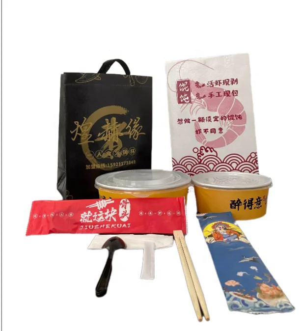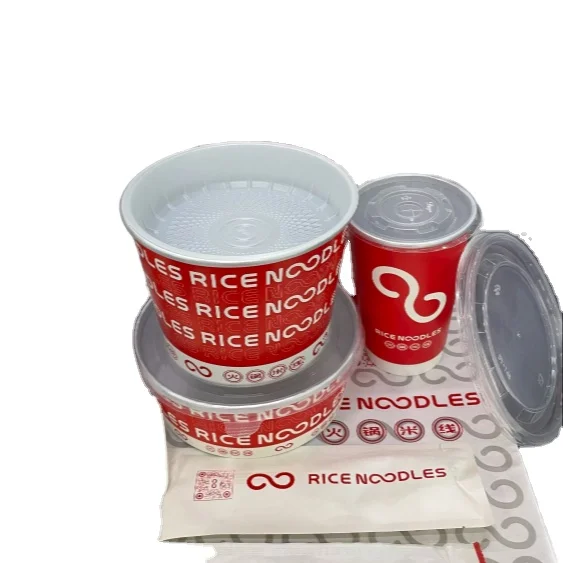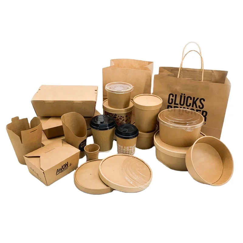 Custom Food Grade Biodegradable Restaurant All Set for Food Take Away Packaging Paper Box Cup Bowl Paper Bag