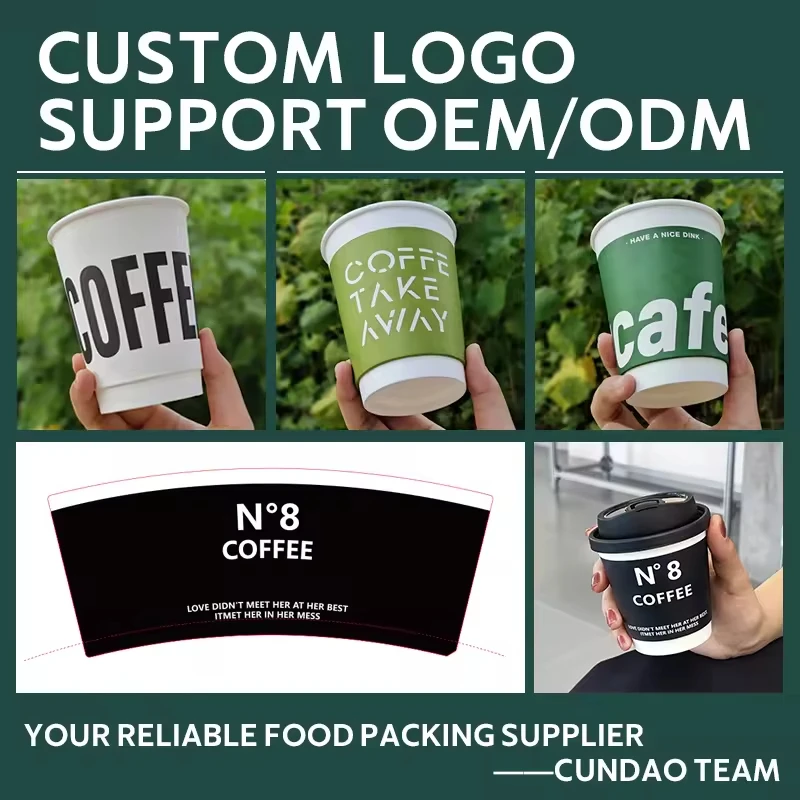Dayupack chinese factory direct custom logo biodegradable Thickened double wall paper cup for coffee milk tea disposable paper coffee cup.