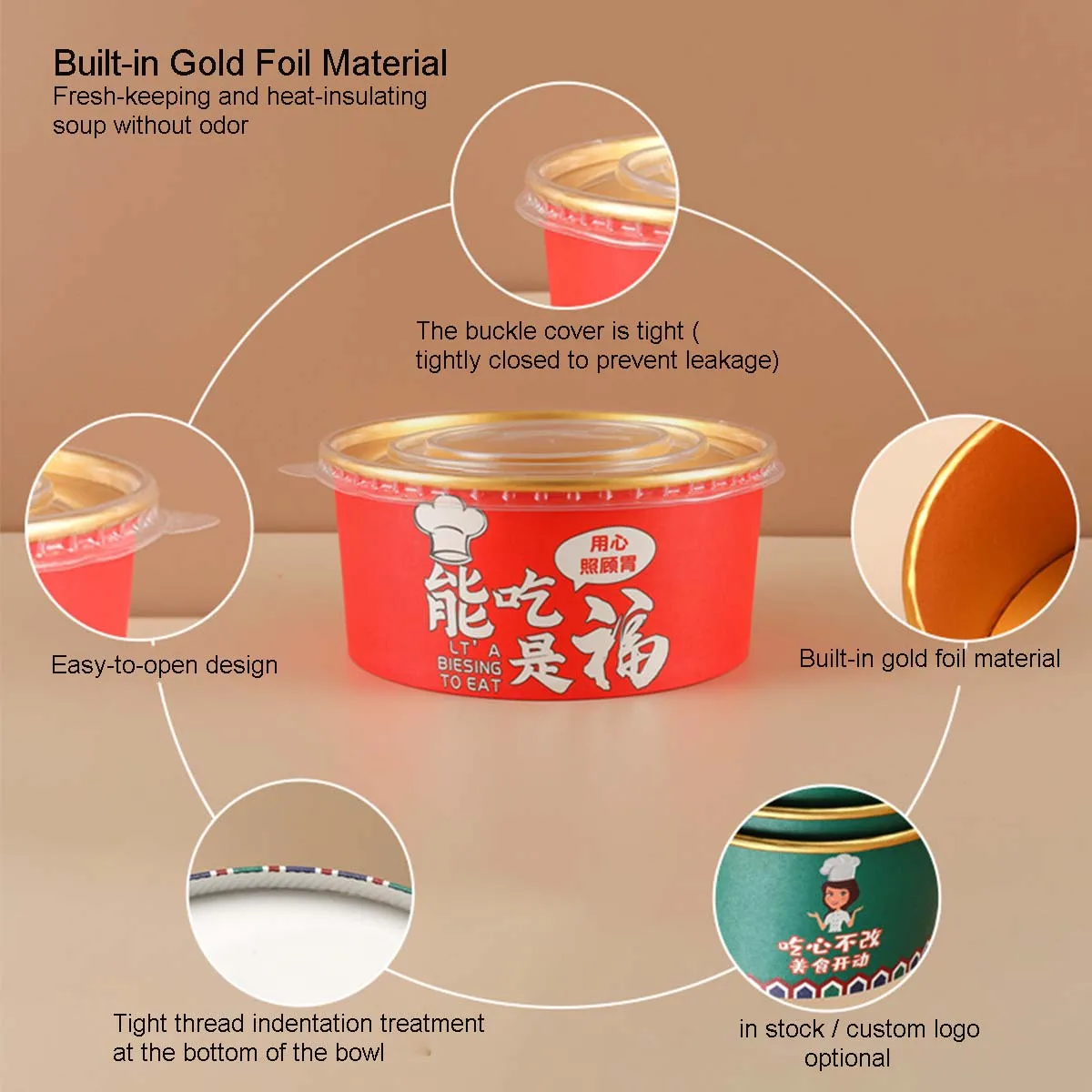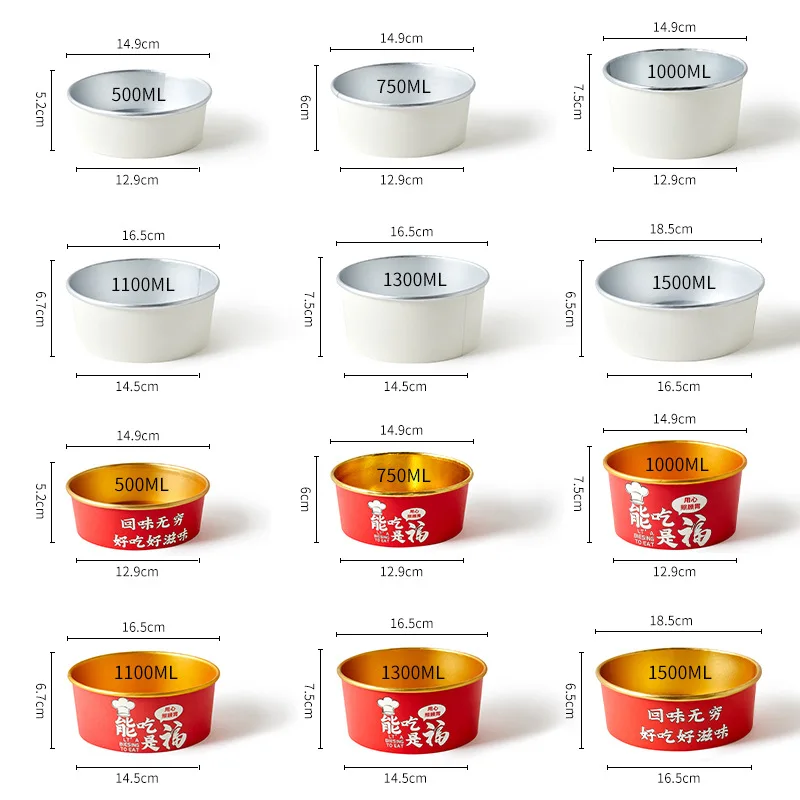 Dayu manufacturers china custom disposable Gold Aluminum Foil Inside Paper Bowl with Lid for salad soup paper food packaging.